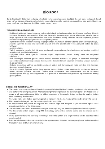 Doruk Bioklimatik Sistemleri; gelişmiş teknolojisi ve katlanma-toplanma özelliğini ile otel, kafe, restaurant, konut,