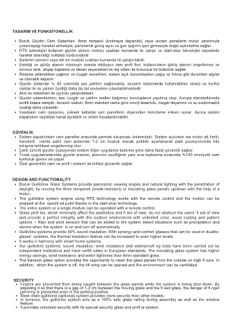 Sistem kapatılırken cam paneller arasında parmak sıkışması önlenmiştir. Sistem açılırken ise motor alt limiti,