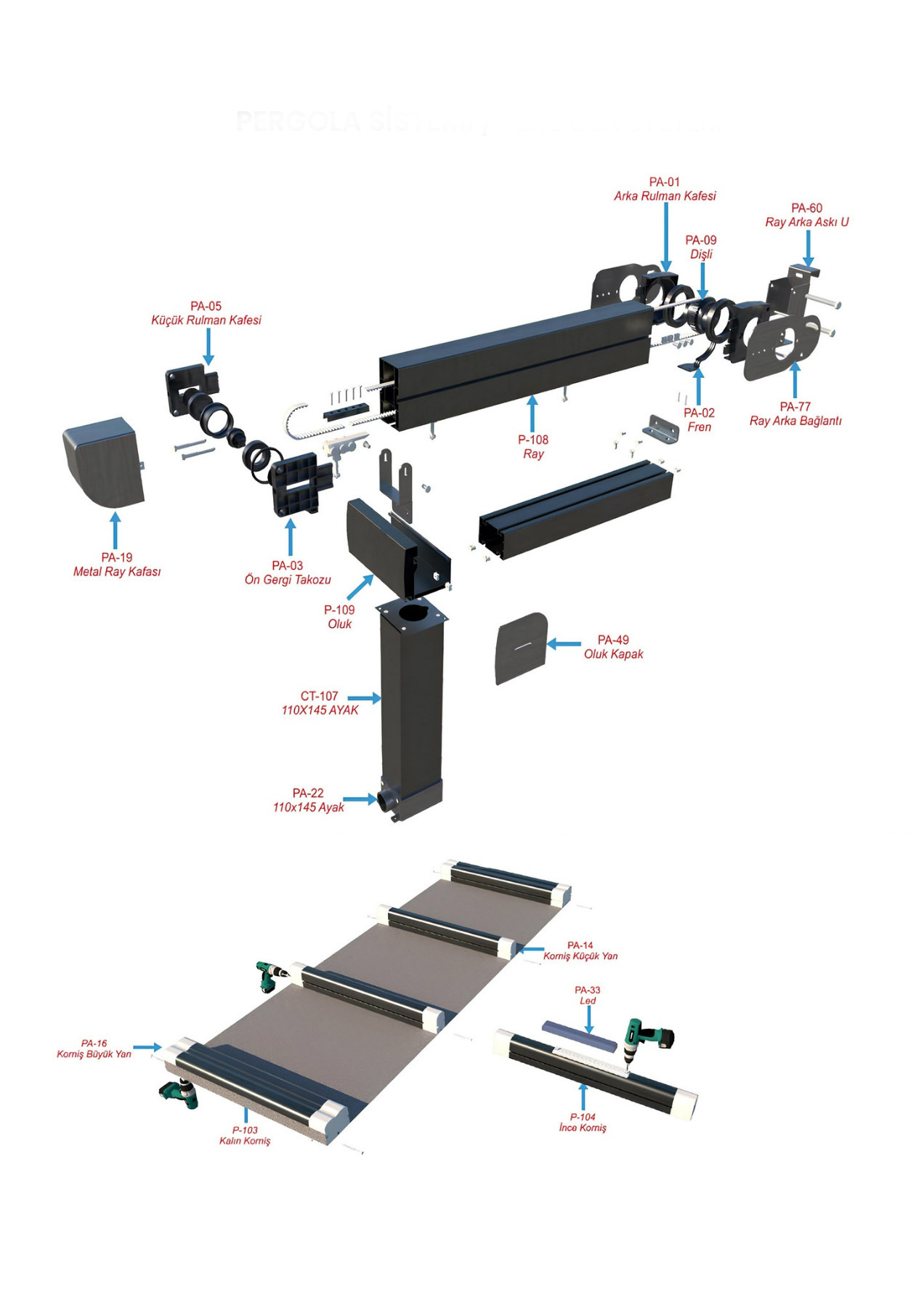 Kaiser Grand Pergola Sistemleri, otel, kafe, restoran, konut, teras, kış/yaz bahçesi ve alışveriş merkezleri gibi alanlarda giyotin, zip perde ve sürme cam sistemleri ile birlikte montaj edilebilir. Şerit veya spot aydınlatma seçenekleri ve renkler siparişe özel olarak hazırlanabilir. Aydınlatma sistemi TSE standartlarına uygun şekilde entegre edilmiştir.